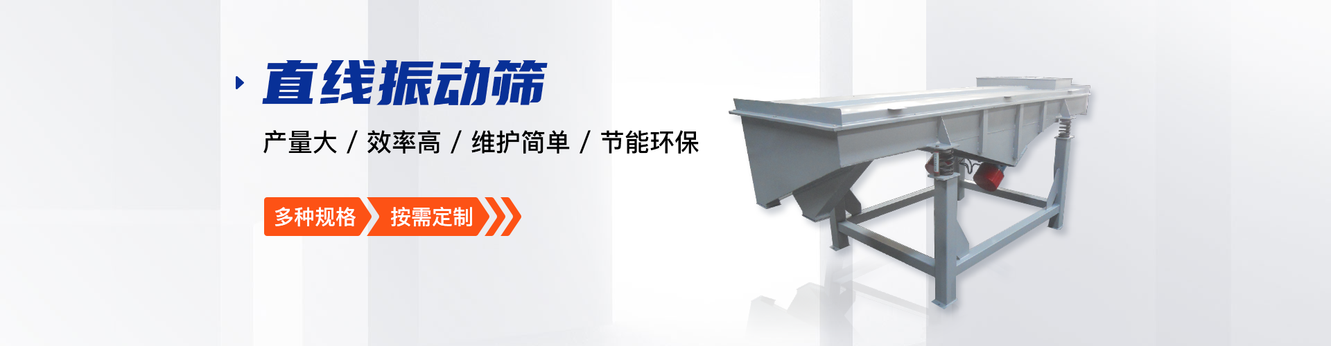 公司的主要產(chǎn)品有:三次元旋振篩、直線振動篩、圓形搖擺篩、方形搖擺篩、脫水篩、超聲波振動篩、塑料振動篩、直排篩、高頻篩、450過濾篩、實驗篩、斗式提升機(jī)、皮帶輸送機(jī)、過濾器、振動電機(jī)等,